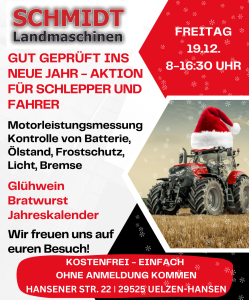 Kommt am 19.12.2025 zwischen 8:00 und 16:30 Uhr nach Hansen und lasst es Schlepper und Fahrer gut gehen.
